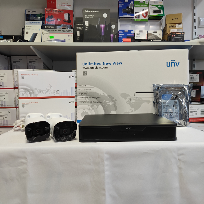 Zestaw do Monitoringu MINI IP Uniview z 2 Kamerami TUBOWYMI 4 mpx